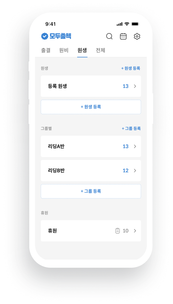학생 정보 관리 기능은 기본이지만, 모두출첵이 만들면 다릅니다.