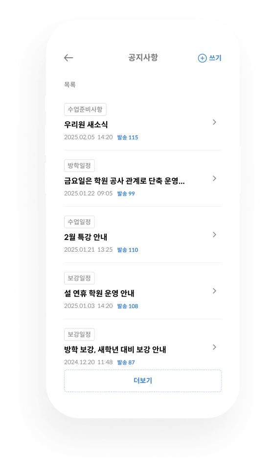 선생님이 학부모와 직접 소통할 수 있는 공지 알림 기능을 제공합니다.