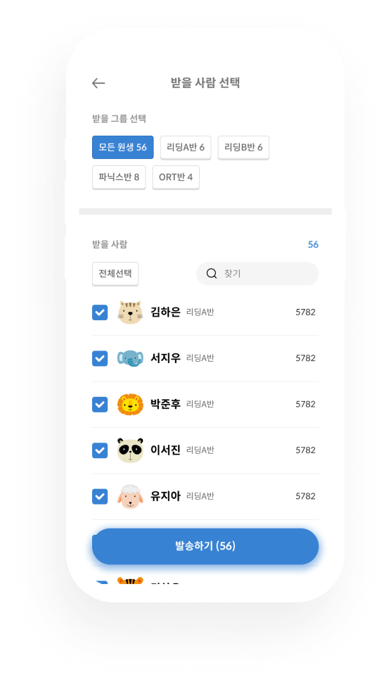 전체, 그룹별, 학생별 맞춤형 다운로드 지원